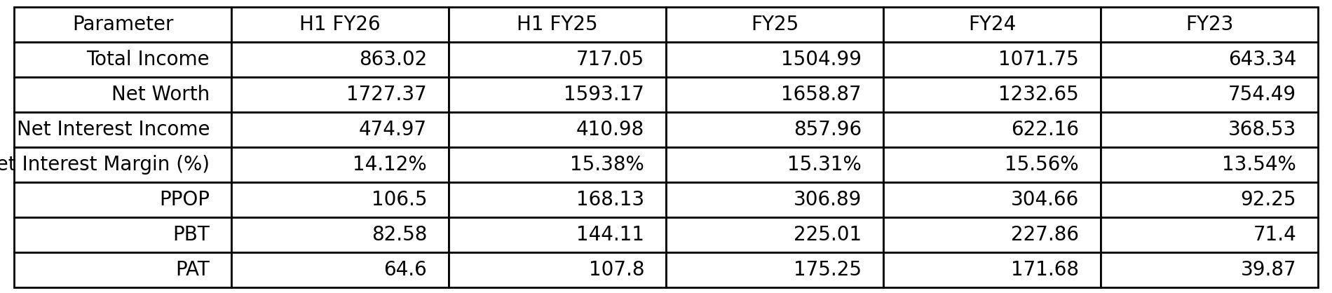 Total Income: Total income has shown strong growth over the medium term, reflecting balance sheet expansion and higher disbursements. Total income increased from Rs 643.34 crore in FY23 to Rs 1,071.75 crore in FY24, marking a growth of 66.6%. This momentum continued into FY25, with total income rising to Rs 1,504.99 crore, up 40.4% YoY. In H1 FY26, total income stood at Rs 863.02 crore, compared to Rs 717.05 crore in H1 FY25, representing a 20.4% YoY increase, indicating sustained growth despite a tighter credit environment.