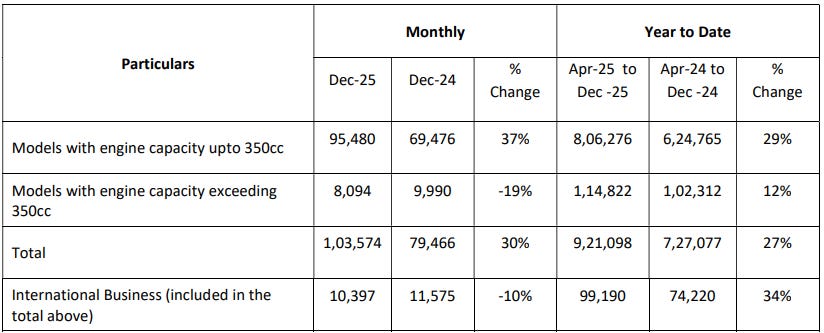 Strong product-led portfolio anchored in the 350–650cc segments. These engine-size segments are less crowded than entry-level scooters and small commuter bikes and carry higher margins per unit. New model launches keep the funnel fresh.