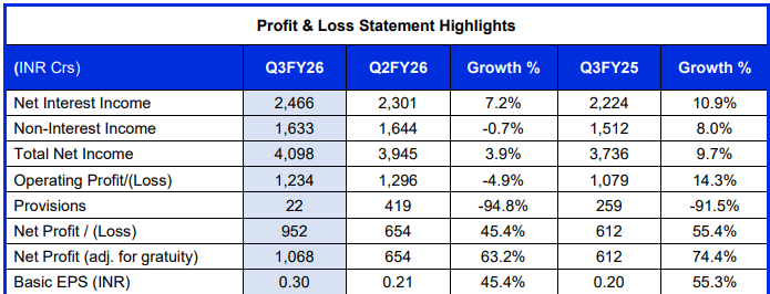 Q3FY26 PAT at Rs 952 Crs, up 55.4% Y-o-Y & 45.4% Q-o-Q.